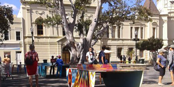 Scendiamo da soli a Fremantle, città portuale non lontana da Perth, dove vivono più o meno 30.000 persone, e ci sembra di trovarci in una ridente cittadina balneare europea del primo novecento: belle case basse dai colori pastello, ringhiere liberty, il fiume Swan che scorre placido, pub, bar, ristorantini, gallerie, giocolieri di strada e tanta gente. È domenica, visitiamo un colorato mercato con cibi e prodotti tipici. In piazza c’è la chiesa anglicana dedicata a san Giovanni evangelista, all’esterno una targa che ricorda un tale in quanto marito di una signora. Incredibile!