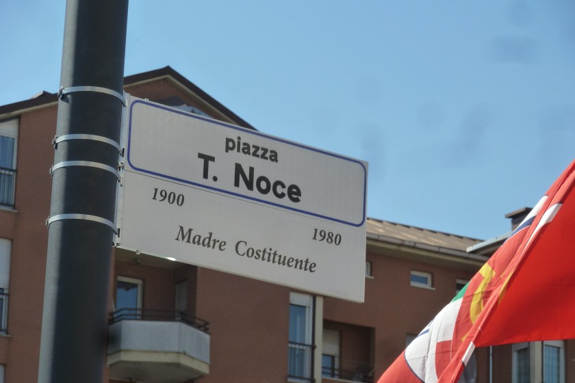 Si è svolta il 21 marzo, nell’area di recente ristrutturazione dell’ex Incet, fabbrica di materiali elettrici nella periferia Nord di Torino, la cerimonia di intitolazione di Piazza Teresa Noce. Ma sarebbe più giusto dire che si è trattato di una grande festa, per l’eccezionale presenza di pubblico e di tanti allievi e allieve delle scuole. D’eccezione anche la regia dell’evento, sapientemente curata dalla Circoscrizione 6: cartelloni e striscioni colorati, bandiere, canti, musiche, e l’azione scenica degli attori di ArTeMuDa. Si è arrivati a questa intitolazione attraverso un percorso di democrazia partecipativa promosso dalla Circoscrizione 6. L’evento è stato anche il risultato della collaborazione di diverse realtà, che hanno scelto, su tre possibili opzioni di intitolazione, proprio il nome di Teresa Noce, proposto dall’Associazione ArTeMuDa e da Toponomastica femminile, cui si è aggiunta l’adesione del Centro Studi Pensiero Femminile e di Anpi.