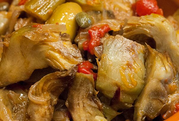 7/8 carciofi puliti e tagliati a spicchi (circa uno a persona)