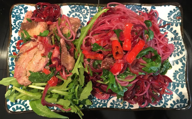 VERSIONE CON SPAGHETTI DI RISO O DI SOIA E PESTO DI CAROTE VIOLA