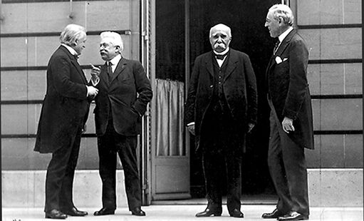 Tra la fine del 1918 e l’inizio del 1919 a Parigi si riuniscono le potenze vincitrici per riorganizzare l’Europa dopo la guerra. Sono presenti il Presidente democratico USA Woodrow Wilson, il Presidente francese Georges Clemenceau, il Primo Ministro inglese David Lloyd George e il Presidente del Consiglio italiano Vittorio Emanuele Orlando insieme al Ministro degli Esteri Giorgio Sidney Sonnino. Per la seconda volta (la prima era stata in occasione del Congresso di Vienna), i vincitori si riuniscono da soli e non trattano con gli sconfitti ma impongono le loro condizioni senza consultarli.