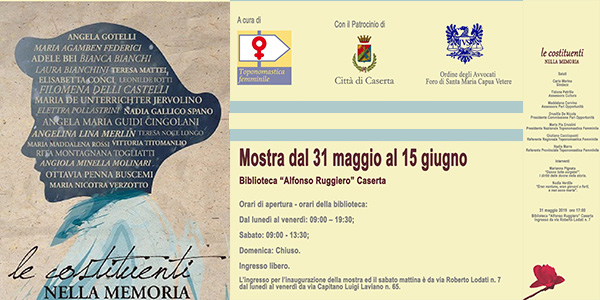 In occasione della festa della Repubblica del 2 giugno, nella Biblioteca comunale Alfonso Ruggiero, il 31 maggio è stata inaugurata una mostra temporanea sulle Madri Costituenti, curata dall’associazione Toponomastica femminile, con il patrocinio della città di Caserta. Ad aprire il convegno, moderato dalla referente provinciale dell’associazione, Nadia Marra, le parole dell’assessora alla cultura Tiziana Petrillo, colpita dalla storia della più giovane fra le Costituenti, Teresa Mattei. “Le storie di queste ventuno donne sono esempi di battaglie per i propri ideali – ha affermato l’assessora – e bisogna oggi rafforzarli e portarli avanti”.