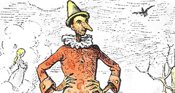 Di Pinocchio burattino (veramente sarebbe una marionetta senza fili, ma è un dettaglio…) sappiamo tutto, o almeno crediamo sia così, come ogni volta che incontriamo un “classico”. Ricordiamo anche le tante versioni per il teatro, per la televisione (celebre l’adattamento di Comencini), per il cinema: da Disney – che ne fece una curiosa ambientazione tirolese – a Benigni, fino a Garrone, attualmente al lavoro con la sua personale rivisitazione. Non dimentichiamo le canzoni: da Carissimo Pinocchio (grande successo di Johnny Dorelli) all’album di Edoardo Bennato. Non si contano le traduzioni, in tutte le lingue del mondo, visto che la storia del burattino-bambino ha saputo conquistare i cuori di tante generazioni di ogni latitudine. Certo il libro si inserisce in un particolare momento storico: l’Italia era unificata da poco più di quindici anni; c’era bisogno di una narrativa che parlasse all’infanzia, anche se lo spirito di Collodi è ben diverso da quello di De Amicis che – con Cuore (1886) – si dette lo scopo di unire bambini e bambine, da Nord a Sud, anche attraverso storie edificanti e patriottiche. Il nostro burattino, invece, combina guai (un po’ come farà Giamburrasca), è bugiardo e spesso scorretto, non vuole andare a scuola, è ingenuo e superficiale, frequenta gente poco raccomandabile, ma è tanto tanto umano che gli si perdona tutto.