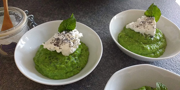 Nota: la menta, col tempo, diventa un po’ amara. Se volete preparare una quantità di crema di piselli più abbondante, per usarla in una seconda occasione, unite la menta solo al momento del consumo.