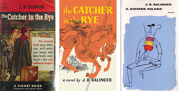 In copertina: le copertine della prima (1951) e della seconda edizione (1953) americana di The Catcher in the Rye, e quella della prima edizione italiana Einaudi (1961). Nessuna di queste piacque all’autore.