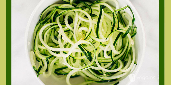 Lavare accuratamente le zucchine e spuntarle da entrambe le estremità. Con l’apposito utensile, ridurle in spaghetti – in alternativa, tagliarle prima a fettine sottili e poi ricavare delle striscioline. Sbollentare gli “spaghetti” per un paio di minuti in acqua bollente salata, quindi scolarli e tenerli da parte.