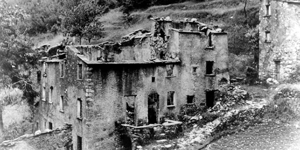 Il giovane – un partigiano, è evidente – si inerpica di corsa su in collina, passa accanto a covoni di fieno carbonizzati, qualche lingua di fuoco che ancora crepita. La macchina da presa sposta lo sguardo su un bosco, poi su una casa contadina. Davanti alla porta corpi scomposti: un uomo e una donna con i capelli grigi, altre due donne, due bimbe: una più grande, rannicchiata accanto alla madre, l’altra un poco più piccola… Sono otto, no, dieci: ci sono altre due persone sorprese dalle raffiche, poco più distanti. La bimba più grande si muove, si stacca dalla madre, dalla famiglia uccisa, si alza, entra in casa. Prende un bicchiere, attinge da una bacinella posta nell’acquaio, beve a lunghe sorsate, respira forte tra l’una e l’altra. Poi, torna fuori, quieta, si rincantuccia accanto alla mamma e per ancora chissà quanto tempo si finge morta. La macchina da presa torna con lo sguardo al partigiano, che, ora, cammina su un crinale langarolo.