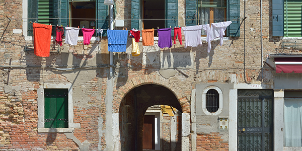 La buona notizia è che le mutande sono diventate un dettaglio secondario, perché ormai tutto il bucato è indecente: molti regolamenti di polizia hanno esteso il divieto di esibire i panni anche nei vecchi centri storici, come a Venezia, dove sono banditi da un numero incredibilmente alto di calli e campielli (multa fino a 500 euro). Il paesaggio urbano contempla da tempi immemorabili le corde tese sopra le vie, soprattutto per la carenza di balconi nelle abitazioni antiche. Eliminare la biancheria dalle nostre città, che godono di molte giornate di sole, le riduce a finzioni turistiche e complica la vita, come la scomparsa del commercio al minuto e la destinazione degli immobili a usi diversi, e spesso non dichiarati. La disneylandizzazione salverebbe il decoro, combatterebbe il degrado e libererebbe l’economia, ma i primi due concetti, paralleli e simmetrici, celano un totale vuoto di significato: si impone l’uno eliminando l’altro e viceversa; e il terzo, con la scomparsa del lavoro (e quindi dei residenti) dai centri storici è falso.