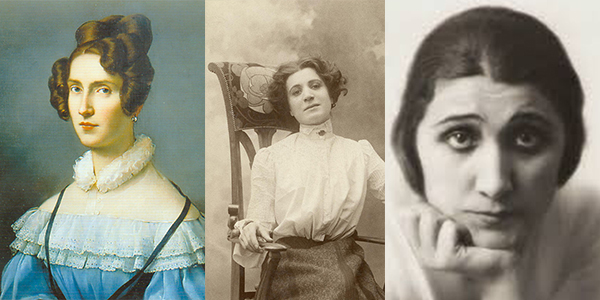 A ben guardare, ognuna di queste occasioni può indurre a uno sguardo di genere, volto a riscoprire le tracce femminili. Valga tra tutti l’esempio dell’evento organizzato a Pescia (Pistoia) presso l’Archivio di Stato che conserva nel suo vasto patrimonio un fondo contenente la documentazione sulle attività del locale teatro. Il teatro oggi è intitolato al compositore Giovanni Pacini, ma la sua storia nasce da lontano, così come l’intensa vita culturale della cittadina. Un gruppo di appassionati si riunì nell’Accademia dei Cheti nel 1667, divenuta poi Accademia degli Affilati (1715). Due anni dopo iniziarono i lavori per realizzare l’edificio, disegnato da Giovanni Antonio Tani, su quello che allora era un prato davanti alla bella chiesa di San Francesco. Nell’atrio si può ammirare una lapide che ricorda una gloria locale: l’attrice Carlotta Marchionni (1796-1864 – a sinistra nell’immagine di copertina).