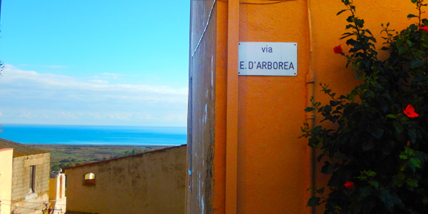 Nel centro storico, passeggiando fra vecchie case, piccole botteghe, ciuffi di bouganville ancora fiorite in autunno avanzato, nelle stradine ripide che portano con ampi gradoni sempre più in alto ci si imbatte in via Eleonora d’Arborea e in via Santa Caterina. Arrivando in uno slargo, troviamo ancora il nome della giudicessa assegnato alla piccola piazza; qui sorge la casa delle Dame, oggi Centro di educazione ambientale e della sostenibilità.