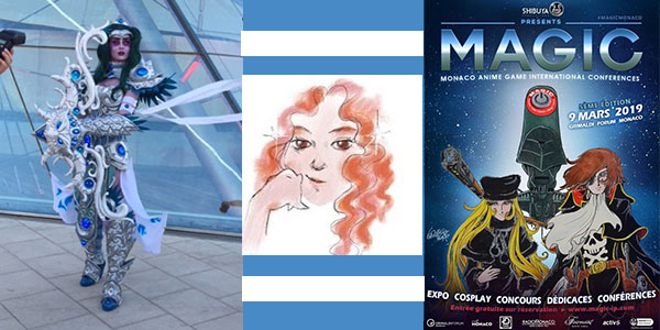 Rivedo dopo anni Patrizia Russo, che conobbi sui banchi di scuola e di cui conservo un disegno di fatina alata donatomi chissà quanto tempo fa. La reincontro adulta per un veloce cappuccino, poi la vita segue il suo corso e la ritrovo al Grimaldi Forum di Montecarlo durante la Monaco Anime Game International Conference (MAGIC), alla sua quinta edizione, organizzata dalla Società Shibuya Productions. L’intera giornata del 9 marzo 2019 è dedicata a numerosi universi — Manga, Comics, Animation, Video games, Pop Culture — secondo un programma di conferenze e tavole rotonde in presenza di game designer, produttori, sceneggiatori e illustratori internazionali in totale interazione con il pubblico. Non mancano le sessioni per la firma autografa di celebri ospiti giunti da ogni parte del mondo. Grande attesa c’è per Yu Suzuki che svelerà le ultimissime novità di Shenmue III, già pronto per l’utilizzo su PS4 e PC Windows. E mi scatta la curiosità perché, oltre agli attori del Monte Carlo Film Festival, nella cui giuria popolare mi pregio essere, vedo girare e offrirsi ai fotografi tutto un popolo di pittoreschi personaggi in travestimenti fantasiosi dai quali emana l’entusiasmo per questo essere altro-da-sé almeno per un giorno.