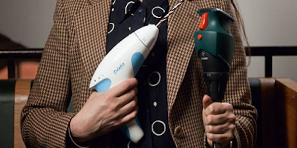 In realtà se esaminiamo bene i due oggetti, le loro forme e le loro caratteristiche, possiamo renderci conto del fatto che, oltre al colore, anche il design non è neutro. Trapano e frullatore sono due oggetti che possono essere pericolosi e che non lasceremmo mai in mano a bambine e bambini: se con un trapano possiamo fare un buco profondo in pochi secondi, con il frullatore in altrettanti pochi secondi possiamo ridurre delle verdure in un purè…ma anche delle dita! Però la forma del trapano gli conferisce una idea di pesantezza, di robustezza e di potenza, l’impugnatura ci ricorda quella di un’arma e per farlo funzionare si aziona il bottone rosso che ci ricorda un grilletto; il colore rafforza tutto ciò nel farci pensare al trapano come ad una specie di arma. Nel frullatore invece la potenza «è nascosta dalla forma esterna del prodotto, la lama rotante è splendidamente incorniciata in una specie di gonna. I pulsanti di ON e OFF sono integrati nella forma, e si ha la sensazione che la forza debba essere più simile a quella di un abbraccio. Il frullatore a mano suggerisce, a differenza del trapano, che è stato progettato per compiti più leggeri che non richiedono altrettanta fatica. I colori sono il bianco brillante e il pastello, che dà una sensazione di luce e di ariosità». E ancora, «Mentre la punta del trapano è esibita, come il sesso del corpo maschile, la lama del Minipimer è invece nascosta, come il sesso femminile. Sviluppando questo parallelo possiamo dire che se si è veri maschi solo quando si spara, il trapano restituisce questo brivido testosteronico anche a chi deve bucare un controsoffitto, e se si è più che mai donne quando ci si muove con misurata eleganza, allora il frullatore permette di tuffarsi nel potage garantendo a chi lo usa la leggiadria di una danzatrice». Ovviamente il tutto ci rimanda anche ai due luoghi dove i due oggetti vengono usati ovvero l’officina (o ripostiglio, nello scomparto degli attrezzi) e la cucina, luoghi consacrati l’uno agli uomini e l’altro alle donne.