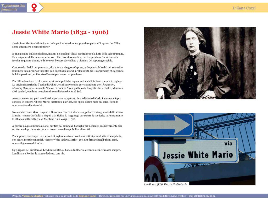 Affrontando il Risorgimento ci si imbatte inevitabilmente in straordinarie figure femminili che con le loro azioni e le loro idee – certo meno note ma non meno importanti dei vari Cavour, Mazzini, Garibaldi – hanno dato un concreto contributo all’unificazione italiana. Partendo da lontano si incontra la nobile figura di Eleonora Fonseca Pimentel, morta impiccata nel 1799 perché coinvolta nella breve gloriosa Repubblica Napoletana; fra i condannati fu l’unica straniera, una delle pochissime donne, la meno giovane e la più istruita. Si resta affascinati da Bianca Milesi, artista allieva di Hayez, che inventò una curiosa forma di linguaggio cifrato: la carta tagliata orizzontalmente come il ricamo “a giorno” che nascondeva – al di sotto – messaggi segreti. E poi Cristina Trivulzio di Belgioioso, Virginia Oldoini contessa di Castiglione (malignamente definita dalla signora Metternich “una statua di carne” per la sua abbagliante bellezza che incantò Napoleone III), Maria Clotilde di Savoia, altruista e coraggiosa, Rosa Montmasson che fu l’unica donna a partecipare ufficialmente alla spedizione dei Mille e in Sicilia, dove fu tanto amata e ricevette il nuovo nome di “Rosalia”. Infine, le Giardiniere, equivalente femminile della Carboneria, che erano solite nascondere un pugnale nella giarrettiera, attive soprattutto a partire dai moti del ’20-21. Fra tutte queste (e molte altre non citate) Jessie Jane Meriton White tuttavia appare particolarmente affascinante e “moderna”, ben diversa dal consueto ruolo di moglie e madre appartata e fedele, in ombra rispetto al più celebre compagno. Mazzini (di cui scrisse la biografia) la definì: “la Giovanna d’Arco della causa italiana”; altri la chiamarono (e forse così è più nota) Miss Uragano per la sua decisione, la sua tenacia, la sua fiducia incrollabile, la sua energia vulcanica. La sua vita è un romanzo d’avventura, amore, passione, patriottismo (che ancora non ha colpito qualche regista o biografo, ed è un vero peccato), cominciando dalle origini: Jessie è inglese, appartiene a una famiglia di ricchi armatori dello Hampshire; il padre di fede puritana muore quando lei ha solo due anni. La figlia (che è nata il 9 maggio 1832 e fa parte di una vera nidiata di 8 bambini) non sarà mai vicina ad alcuna religione, e già questo per l’epoca è un tratto distintivo della sua indipendenza di giudizio e di azione. Vorrebbe fare la medica, ma è impensabile, quindi studia filosofia a Parigi, dove si avvicina alle idee mazziniane. Qui conosce Emma Roberts, intima amica di Garibaldi, che la conduce proprio da lui a Nizza e in Sardegna. Jessie rimane folgorata e comprende di aver trovato la causa cui dedicare la propria vita: l’unificazione italiana. Comincia una vera missione: scrive articoli su articoli per la stampa anglosassone e raccoglie fondi viaggiando senza posa in Scozia e in Inghilterra. Dopo il fallimento della spedizione di Pisacane e il rientro in Italia, Mazzini fugge a Londra e Jessie viene imprigionata per 4 mesi, a Genova, insieme al fidanzato. Ha infatti conosciuto un bell’italiano alto e biondo: Alberto Mario (veneto di Lendinara) che condivide la sua passione (ma è un repubblicano federalista); il matrimonio viene celebrato nel 1857 in Inghilterra, ma Jessie non si ferma: continua le sue conferenze per diffondere fra gli Inglesi le idee di Mazzini e Garibaldi e raccogliere fondi. La coppia si sposta a New York e i quotidiani locali parlano di lei; a Jessie era stata fatta una raccomandazione: parla pure dell’Italia, ma non toccare i problemi americani. Naturalmente come “un uragano” non può seguire le convenzioni, anzi attacca duramente la società americana su due temi scabrosi: il razzismo e la schiavitù, ma non è tenera neppure con i Savoia, a suo dire poco attivi per la causa italiana. Qui si nota un altro aspetto straordinario di Jessie: ovunque vada, pur avendo un obiettivo e una missione, è attenta a ciò che la circonda e coglie ogni occasione per esprimersi senza timori. Nel ’59, appena saputa la notizia che Napoleone III avrebbe aiutato i Piemontesi contro l’Austria, i due sposi prendono la nave, ma arrivano troppo tardi: è stato firmato l’armistizio di Villafranca; vengono arrestati come spie liberali e quindi espulsi dall’Italia. Dalla Svizzera, dove si sono rifugiati, riescono a raggiungere le truppe garibaldine in Sicilia; finalmente Jessie può realizzare uno degli scopi della sua vita: occuparsi con dedizione dei feriti e degli ammalati, svolgendo con abnegazione mansioni di infermiera e organizzando un vero supporto per le truppe. Si rende conto delle pessime condizioni igieniche e sanitarie degli ospedali italiani ed ingaggia una vera battaglia per far sostituire il personale indegno e profittatore che riservava ai malati cibo avariato. L’unificazione non è ancora conclusa, quindi Jessie nel ’66 e nel ’67 è attivamente coinvolta nelle nuove campagne di Garibaldi; parte persino per la Francia e partecipa alla guerra Franco-Prussiana del 1870, svolgendo sempre con energia e ottimismo i suoi compiti di infermiera, ma anche inviando ai quotidiani corrispondenze dai campi di battaglia, come i moderni “reporter di guerra”. Le opere del Verga e Capuana, di Matilde Serao, di Fucini ci ricordano che il popolo italiano è ancora diviso, soprattutto per le differenze economiche e sociali, per lo squilibrio fra Nord e Sud, per l’analfabetismo, per le drammatiche condizioni dei minatori, per la malaria che imperversa, per lo sfruttamento minorile; Jessie lo sa bene, quindi visita Napoli e il Sud per verificare personalmente, per studiare la realtà, per parlare con le persone, per affrontare problemi che i Governi liberali stanno trascurando colpevolmente. Si occupa della pellagra, della carente alimentazione dei braccianti, delle malsane abitazioni (vere grotte da animali, come a Matera, o i “bassi” napoletani), dei piccoli sfruttati nelle s