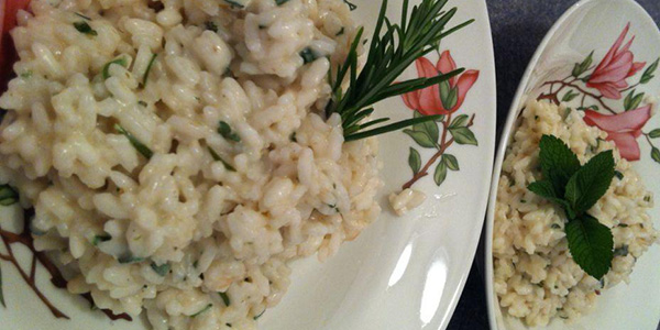 Non volete rinunciare a una piccola sorpresa? Legate le erbe in un sacchetto di tulle, tipo bomboniera, e mettetele nell’acqua o nel brodo: il riso assorbirà il profumo, pur avendo l’apparenza di un risotto bianco.