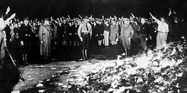 Joseph Goebbels, ministro della propaganda del Terzo Reich, non inventa nulla quando organizza il rituale esoterico del primo rogo di libri in Opernplatz, a Berlino, il 10 maggio 1933, e tuttavia utilizza con intelligenza volta al male la possibilità della propaganda capillare e ossessiva resa possibile dalla società di massa: «Ripetete una cosa qualsiasi cento, mille, un milione di volte e diventerà verità». Così è per l’arte e per la musica ‘degenerate’ (entartete kunst, entartete musik: espressionismo e jazz, per citare soltanto due correnti), così è per i libri di autori, donne e uomini, ritenuti contrari all’autentico spirito della Germania, condannati a essere dati alle fiamme in grandi eventi pubblici, accuratamente preparati da feroci campagne d’odio, il primo dei quali proprio in Opernplatz (ora Bebelplatz) a Berlino, quel 10 maggio 1933.