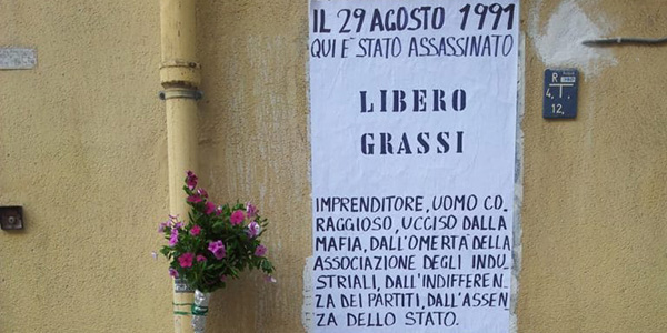 La mattina del 29 agosto 1991, mentre si reca a piedi al lavoro presso la sua fabbrica di biancheria intima Sigma, Libero Grassi viene ucciso da Cosa Nostra con quattro colpi di pistola. La colpa che ha decretato la condanna dell’imprenditore da parte della Cupola è il rifiuto del pagamento del pizzo e l’aperta denuncia dei suoi estorsori. Libero, infatti, aveva avuto il coraggio di esporsi e di fare i nomi degli esattori criminali, i gemelli Antonio e Gaetano Avitabile. Il 10 gennaio 1991 nel “Giornale di Sicilia” aveva scritto: «Volevo avvertire il nostro ignoto estortore di risparmiare le telefonate dal tono minaccioso e le spese per l’acquisto di micce, bombe e proiettili, in quanto non siamo disponibili a dare contributi e ci siamo messi sotto la protezione della polizia. Ho costruito questa fabbrica con le mie mani, lavoro da una vita e non intendo chiudere. Se paghiamo i 50 milioni, torneranno poi alla carica chiedendoci altri soldi, una retta mensile, saremo destinati a chiudere bottega in poco tempo. Per questo abbiamo detto no al “Geometra Anzalone” e diremo no a tutti quelli come lui». L’11 aprile dello stesso anno Grassi va ospite alla trasmissione “Samarcanda” di Michele Santoro e afferma pubblicamente: «Io non sono pazzo, non mi piace pagare, è una rinunzia alla mia dignità di imprenditore». Un uomo coraggioso, una persona perbene, che nel suo stesso nome aveva insiti i semi dell’onestà, della giustizia e della legalità.