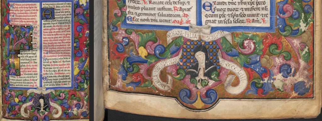 La giovane suora si è raffigurata in abiti monacali, con le mani giunte e la testa inclinata, mentre sul cartiglio che incornicia il ritratto si legge: «Ancilla Iesu Christi Maria Ormani filia scripsit MCCCCLIII». Nella pagina manoscritta, elegantemente e riccamente decorata, il suo ritratto ha una posizione centrale, segno di orgoglio e di consapevolezza del suo valore, ma la posa e l’iscrizione denotano umiltà e devozione.