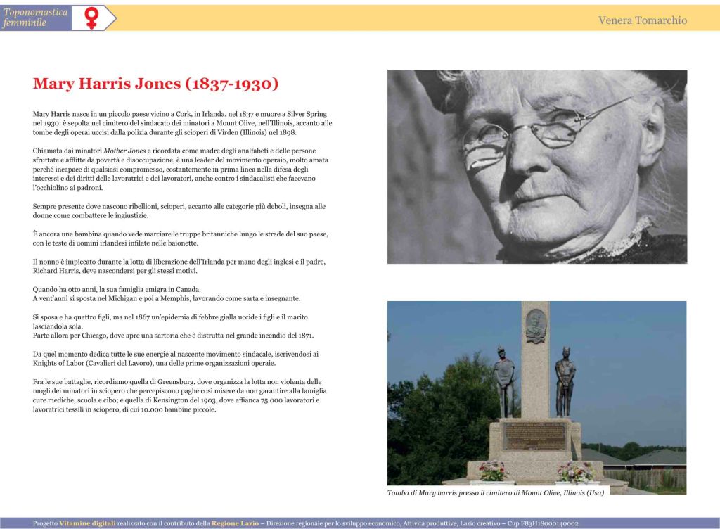 Ortoleva P. (a cura di), L’autobiografia di Mamma Jones. Vita di una agitatrice sindacale americana, Einaudi, Torino, 1977Gorn E., Mother Jones: The Most Dangerous Woman in America, Hill & Wang, New York, 2001