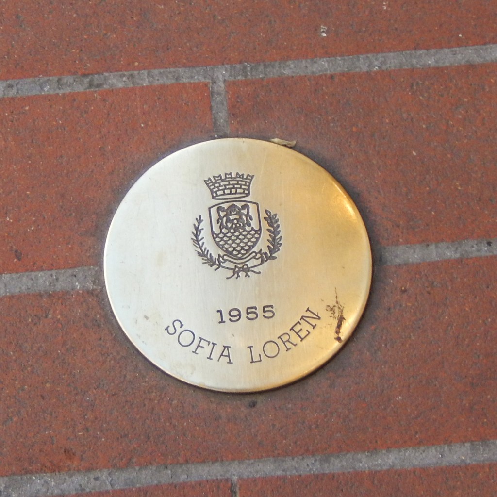 Proseguiamo la passeggiata, seguendo le date incise sui medaglioni e operando necessariamente delle scelte. Troviamo per prima la bionda e ricciuta “fidanzatina d’America” Mary Pickford (Toronto 8-4-1892 – Santa Monica 29-5-1979) che venne a Montecatini nel lontano 1926 per l’inaugurazione dello stabilimento termale Excelsior, proprio quando era al culmine della fama. Nel ’29 ricevette l’Oscar per il film Coquette; all’epoca fu una delle star più pagate e la donna più potente di Hollywood perché anche produttrice di sé stessa.