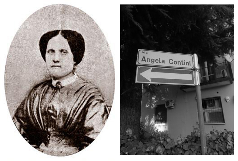 Secondo una consolidata tradizione, la giovane Angela, nella notte del 23 marzo 1849, sarebbe stata sbalzata dal letto da una cannonata austriaca che aveva fatto crollare le pareti della camera e avrebbe raggiunto il marito sulle barricate, combattendo al suo fianco nel corso dell’insurrezione. Ritornata poi nella casa in rovina, avrebbe sorpreso un soldato croato in cerca di bottino di guerra, lo avrebbe afferrato gridandogli: «Vattene! Le bresciane non uccidono inermi», per poi cacciarlo giù per le scale. Angela appartiene a una famiglia di sentimenti patriottici, attivamente impegnata nel movimento risorgimentale, in particolare nelle cosiddette Dieci giornate di Brescia (23 marzo-1° aprile 1849). Il marito, Enrico Contini (1822-1880), di professione tintore, combatte sulle barricate, come Angela. Tocca però aspettare a lungo per vedere comparire nome e cognome della patriota nei resoconti sull’insurrezione bresciana, la cui narrazione rende davvero poca giustizia alle donne, come soggetto collettivo e come singole.
