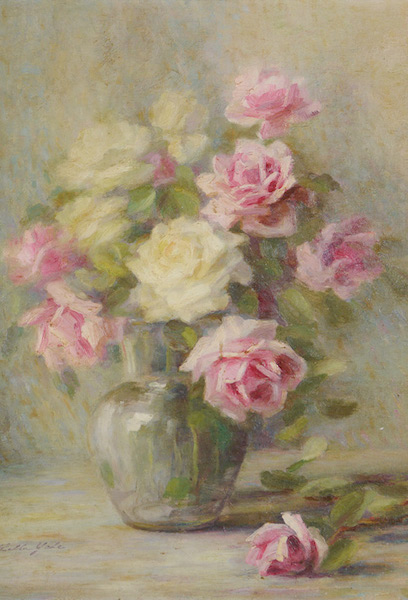 Dell’americana Mary Austin Oliver (1851-1948) è questo quadro con rose bianche e rosa.