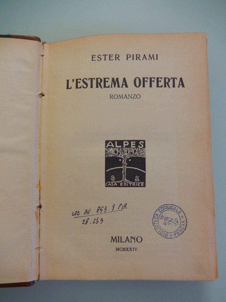 A partire dal 1915 Ester si dedicò con più continuità alla narrativa e nel ’16 iniziò il romanzo L’estrema offerta, pubblicato nel ’24, con la prefazione dell’onorevole Ferdinando Martini, uno dei personaggi politici di spicco a livello toscano e nazionale. Ora una rara copia del libro, in edizione originale autografata, si può consultare presso la biblioteca comunale “Magnani” a Pescia. L’anno precedente aveva pubblicato un libro per l’infanzia: Fiordineve-romanzo fantastico, per le edizioni fiorentine La Voce.