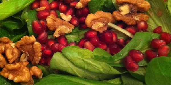 Questa semplice insalata non è solo buona e leggera, sia come contorno che come antipasto; è anche molto bella e contribuisce alla decorazione della tavola di Natale. Preparatela in ciotole individuali e lasciate che i vostri ospiti la gustino prima con gli occhi, e poi con il palato.