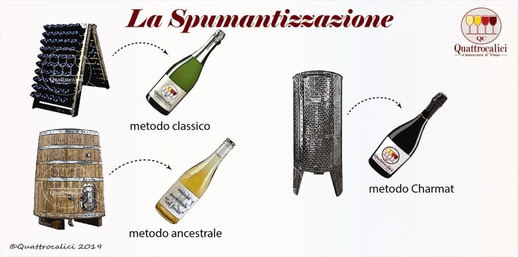 Di spumante e spumantizzazione, tuttavia, ne parlava già nel XIV secolo il benedettino Don Francesco Scacchi di Fabriano nell’opera De salubri potu dissertatio, anticipando quanto sarebbe stato scoperto qualche secolo più tardi. Fra le molte leggende, è pero certo che sono state le esperienze dei vignaioli nella Champagne, regione particolarmente vocata per la produzione di questa tipologia di vino, grazie anche e soprattutto alla natura del terreno calcareo che ben si presta a conferire alle uve caratteristiche fondamentali per spumantizzazione, a mettere a punto il famoso méthode champenoise, processo tutelato da una normativa stringente tanto che, se applicato al di fuori di quella regione, lo spumante non può più essere chiamato con il nome omonimo. Anche nella stessa Francia, infatti, al di fuori della regione della Champagne, gli spumanti realizzati con il metodo analogo prendono il nome di Crémant, e in Italia il processo di produzione degli stessi acquisisce il nome di metodo “classico”.