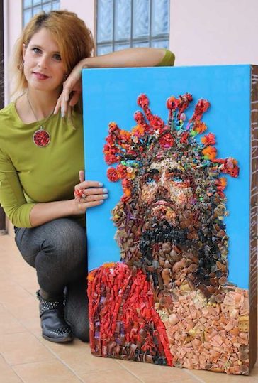 Letizia Lanzarotti è un’artista italiana, nata a Rho nel 1990, ed è conosciuta col nome d’arte di Lady Be, ispirato al brano Let it Be dei Beatles, di cui è un’appassionata fan. Ha inventato una tecnica del mosaico particolarmente originale, che fa uso di oggetti di riciclo. L’idea del mosaico è nata dalla sua mania di conservare oggetti vari che non servivano più (giocattoli, conchiglie, lattine, monete, cd, involucri di make up, bigiotteria, cancelleria, tappi e altro). Poi ha scelto di utilizzare su uno sfondo di resina soltanto la plastica, perché ha la giusta consistenza, è duratura e non cambia di colore col tempo. Erede della pop art, dal 2010 ha esposto in musei e gallerie italiane ed estere, suscitando grande interesse; ha realizzato con la tecnica del mosaico ritratti di icone pop del cinema, della musica e dell’arte. Nel 2016 ha realizzato una Barbie Tumefatta, per sensibilizzare il pubblico sul tema della violenza contro le donne.