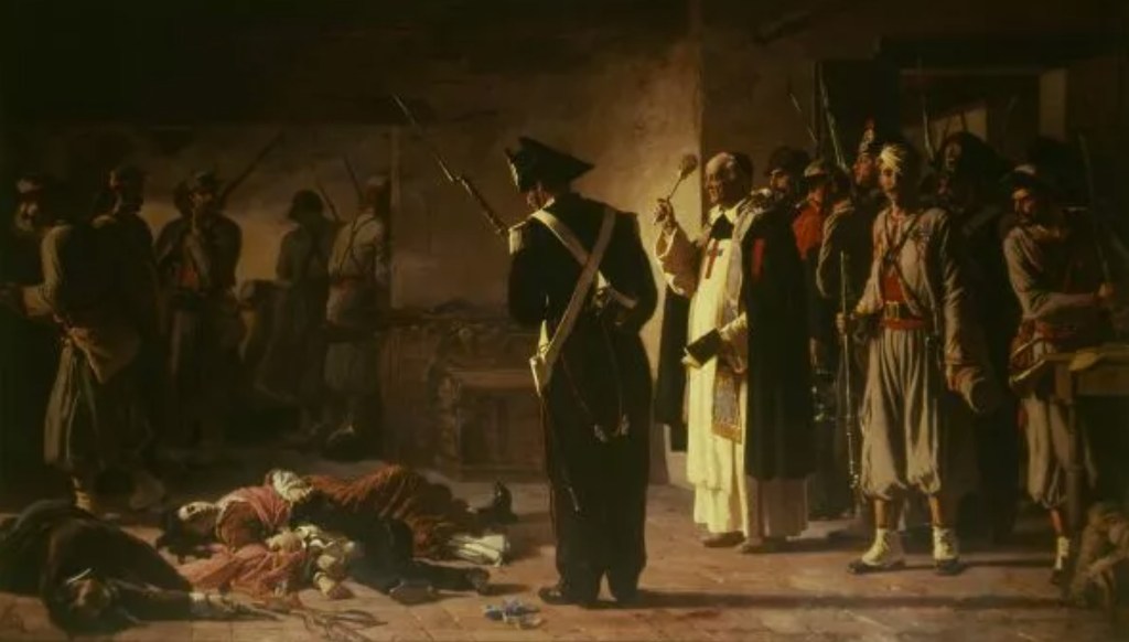 Carlo Ademollo, L’eccidio della famiglia Tavani Arquati, 1880, olio su tela, 27×44 cm,