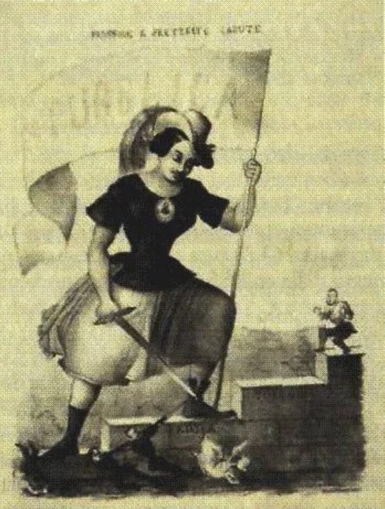 L’immagine, pubblicata sul periodico radicale livornese “L’Inferno. Giornale della Notte” del 12 febbraio 1849, è conservata alla Biblioteca Labronica F. D. Guerrazzi di Livorno.