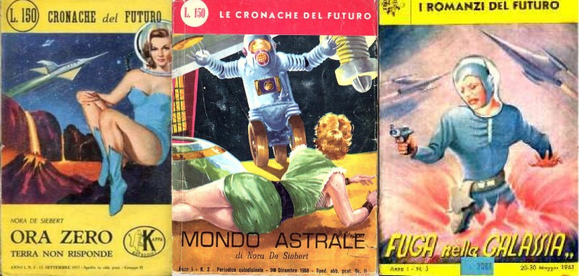 Il curriculum letterario di Nora si presta evidentemente al pregiudizio, ma forse proprio per questo la lettura della sua produzione in ambito science fiction riserva qualche sorpresa: la bibliografia a suo nome documentata dal Catalogo Vegetti conta sette romanzi brevi e un racconto, tutti pubblicati per serie ed edizioni effimere e marginali (De Siebert non compare su “Urania”, che non è solo, come afferma la testata, «la più famosa collana di fantascienza» italiana, ma è anche la più prestigiosa) tra il 1957 e il 1958, a eccezione dell’ultimo, apparso nel 1962. Serie ed edizioni ora pressoché introvabili.
