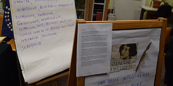 Discussione in circle time con i partecipanti della serata di teatro filosofico sui temi emersi dalla figura di Simone Weil.
