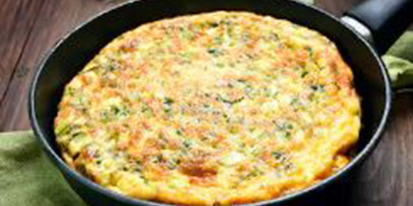 Trasferite la frittata in un tegame di dimensioni adeguate e passate in forno per circa 20 minuti, o finché la superficie apparirà ben compatta.