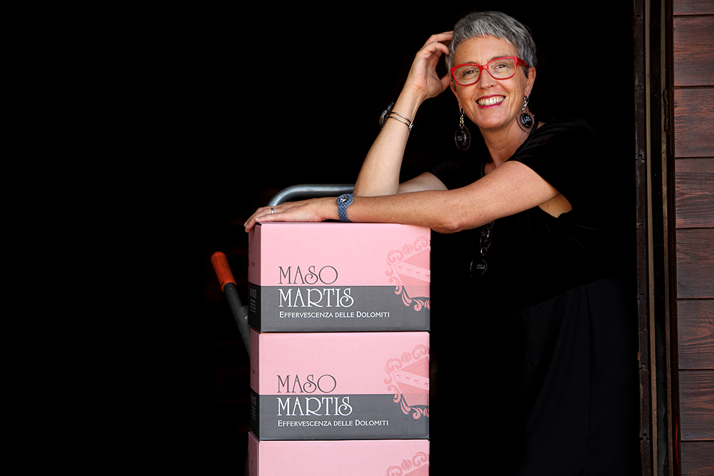 In questo meraviglioso panorama vitivinicolo, non si può non citare la cantina Ferrari, un’azienda che non ha bisogno di presentazioni poiché pioniera nel settore spumantistico italiano di qualità e ancora oggi una delle realtà vitivinicole italiane più conosciute al mondo, una tradizione di eccellenza dal punto di vista enologico e umano, portata avanti con passione e professionalità da Alessandro, Camilla, Matteo e Marcello Lunelli. Nello stretto giro di trent’anni anche un’altra azienda si è fatta spazio nel ghota delle eccellenze di questo settore: si tratta di Maso Martis, una cantina che sorge sulla collina di Martignano, ai piedi del Monte Calisio, il leggendario monte Argentario, che domina dall’alto dei suoi quattrocentocinquanta metri di altitudine la valle dell’Adige e la città di Trento, una zona che gode di un’esposizione ottimale, in cui la viticoltura era in auge già dalla fine dell’Ottocento. Fondata nel 1990 da Roberta Giuriali assieme al marito Antonio Stelzer, comprende dodici ettari di terreno, con bosco e casa colonica. L’azienda si è da subito dedicata alla produzione di spumante metodo classico, un vino che secondo Roberta rappresenta al meglio il terroir del Trentino, ma anche e soprattutto la sua anima spumeggiante, grintosa e caparbia che le ha permesso di intraprendere una vera e propria sfida, quando ancora il marchio Trento Doc non esisteva e questo prodotto non aveva ancora raggiunto il riconoscimento di alta qualità attuale, se non nel caso di Ferrari.