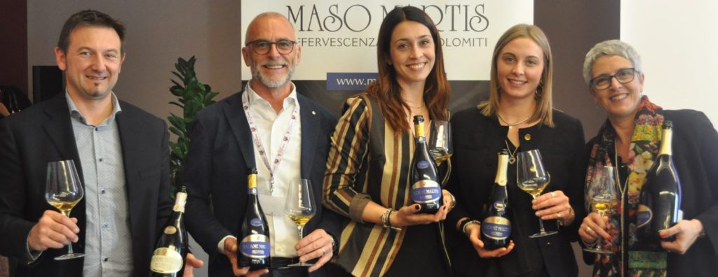 Oggi Roberta è coadiuvata nella conduzione dell’azienda dal marito Antonio, vignaiolo, dall’enologo Matteo Ferrari, e dalle figlie Alessandra, la quale si occupa dell’accoglienza e della comunicazione, e Maddalena, apprendista e ancora studente, autrice di un originale studio del percorso dei sensi in vigna. E allora il vino di punta, non poteva che celebrare nelle lettere del suo nome le tre donne dell’azienda: Madame Martis, la Riserva di Trento Doc, realizzata con il settanta percento di pinot nero e venticinque percento di chardonnay fermentato in legno, con l’aggiunta di una piccola percentuale di pinot meunier, che affina per nove lunghi anni sui lieviti in bottiglia. Un prodotto di rara eleganza, che si distingue per un bouquet aromatico prezioso, che va dalla frutta esotica alla confettura di albicocche, dal miele alla pasticceria, con eleganti note di evoluzione e una sapidità e mineralità in bocca che suggellano un sorso cremoso e memorabile, dalla persistenza infinita.