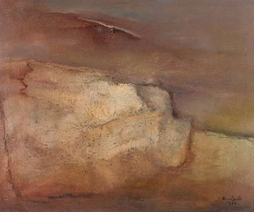 Da uno sguardo d’insieme risulta evidente che Scotti si serve inizialmente di un richiamo alla realtà, che può essere un paesaggio, una scogliera, una città, il mare, ma poi la filtra attraverso una visione espressionistica. Spesso la visione, fatta di segni contorti che esprimono comunque delle emozioni, viene mediata con le ricerche materiche che appartengono all’informale. Dunque partendo da suggestioni velatamente oggettive, scaturite magari dal ricordo, fa un percorso di sublimazione e di sintesi che diventa allora un percorso nella materia: il mezzo utilizzato diviene esso stesso la realtà da esplorare, con una sorta di ribaltamento dei piani. Non per nulla l’artista si serve di tecniche diverse: la china, l’acquerello, l’olio, l’inchiostro stilografico su carta, tela, cartone, compensato, che danno vita a esiti vari (ma realizza anche disegni a matita o carboncino, piatti e vasellame in ceramica); d’altra parte ha vissuto e operato in un’età di cambiamenti e di novità in cui prevaleva la tendenza all’arte non figurativa e si amavano tutte le sperimentazioni.
