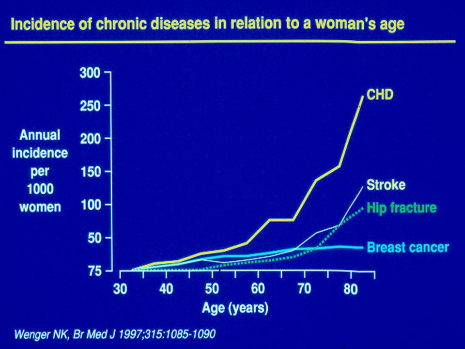 The Yentl Syndrome trova nuove conferme nel 1997: quell’anno i registri di cardiologia degli Stati Uniti mostrano come su un campione di mille donne americane la prima causa di mortalità, in rapporto all’età, siano le malattie coronariche (Chd). Seguono con distacco l’ictus, la frattura dell’anca e per ultimo il cancro al seno.