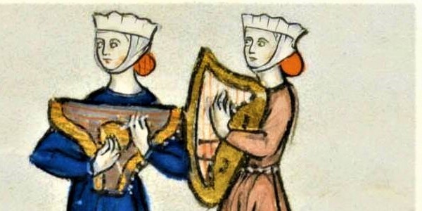 Nel XII e XIII secolo al di là delle Alpi, nel Centrosud della Francia, c’è una ricca fioritura di musica e poesia femminile ad opera delle trovatore o trovatrici. Le artiste del trobar, verbo che vuol dire “scrivere, comporre, poetare”, rimaste sconosciute per secoli, non sono modeste giullaresse vaganti ma finissime poete che mettono in musica e cantano i loro versi scritti in lingua d’oc o provenzale, parlata in quasi tutta la Francia a sud della Loira in una vasta area detta Occitania o Provenza, che va dal Mediterraneo all’Atlantico, da Marsiglia a Bordeaux. Le trovatrici, dette in provenzale trobairitz, cantano accompagnandosi con la viella, lo strumento musicale più diffuso del tempo. La viella, considerata l’antenata del violino, è ad arco, di forma ovoidale, generalmente a cinque corde, a volte anche a sei, che si suona semplicemente pizzicandola con le dita, appoggiandola contro il petto o contro la spalla e sotto il mento.