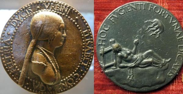 L’identificazione con le due signore dei ritratti è confermata da due medaglie in bronzo, opere di Adriano Fiorentino, datate al 1495.