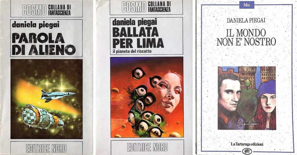 L’esordio di Daniela Piegai avviene nel 1978, quando Nord pubblica nella collana di fantascienza Cosmo, a cura di Sandro Pergameno, il primo romanzo, Parola di Alieno, cui segue, a due anni di distanza, per lo stesso editore e nella stessa serie, Ballata per Lima. Il pianeta del riscatto. La scrittrice ha trentacinque anni: la molteplicità delle esperienze e la curiosità per il mondo non le hanno consentito e non le consentono dedizione assoluta alla science fiction, o comunque all’attività letteraria, che di fatto sarà progressivamente abbandonata negli anni Duemila a vantaggio della pittura. Daniela Piegai, infatti, nasce a Parma l’11 gennaio 1943, vive nella giovinezza a Firenze e compie gli studi all’Università di Pisa; è corrispondente del glorioso quotidiano Paese Sera, collabora con Il Corriere dei Piccoli, Intrepido, Il Monello, e, come lei stessa scrive, è formatrice nell’ambito della comunicazione; viaggia in Italia e in Medio Oriente (di atmosfere mediorientali sono densi i suoi testi) fino all’approdo a Cortona, ove lavora e vive con la famiglia e (nel 2005) «quattro gatti, cinque camaleonti, tre tartarughe, un orsetto lavatore».