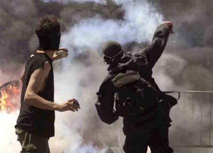 I carabinieri iniziano subito l’offensiva. «Ma cosa succede, perché ci attaccano qua?»: nessuno capisce perché la prima carica avvenga in questo punto. Le Tute Bianche si aspettavano qualche spinta, non un’aggressione di tale ferocia. I manganelli usati al contrario fanno molto male, i manici con l’impugnatura in rilievo rompono le teste, gli scudi di plexiglass si spaccano in fretta, il gas Cs soffoca e brucia. I carabinieri usano anche bastoni e spranghe di ferro, molto più dolorosi dei manganelli. Candelotti incandescenti vengono sparati da terra, dalla ferrovia e anche dall’elicottero, mentre i blindati in velocità vengono lanciati sulla folla per spaccare il corteo. Qualcuno prova a rispondere con lanci di bottiglie, ma è tutto inutile, come un bambino palestinese che prova a colpire un carro armato lontano con una pietra. Le cariche vanno avanti ore e ore. Gli occhi e la gola bruciano forte, il naso sanguina, la pelle si ustiona.