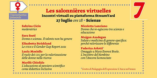 Settimo appuntamento con Les Salonnières Virtuelles, i salotti virtuali di Toponomastica femminile, stavolta dedicato alle Scienze.