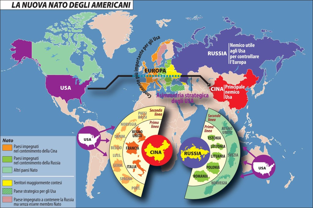 Mai come in questo periodo la Russia pare assediata dalla Nato, al Nord al centro e al sud di Mosca, attraverso una cortina di ferro che si è spostata sempre più verso Est, l’Ucraina è indipendente dal 2014 grazie a un colpo di Stato benedetto dagli Usa e occorre chiedersi quanto ci si possa spingere nell’assedio senza che inevitabilmente la Russia sia portata a rivolgersi alla Cina per contrastare la potenza egemone.