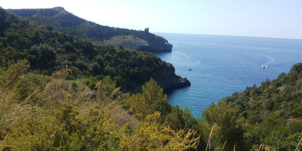 Proseguendo nella discesa si arriva in vista del porto degli Infreschi, un luogo incantevole con acque limpide e due piccole spiaggette. Se siete stati mattinieri, vi potrà capitare, come a noi, di arrivarci per primi e di fare un bagno ristoratore e corroborante nelle sue fresche acque cristalline. La temperatura più fredda del mare si deve alla presenza di venature di acque dolci che sgorgano dalle grotte che contornano la baia. In passato queste grotte servivano ai pescatori per conservare il pescato. Il porto degli Infreschi è inserito nel Parco Nazionale del Cilento ed è un’area marina protetta. Su questo sentiero abbiamo incontrato tre ragazzi statunitensi che lo hanno percorso di prima mattina. Appagati da tanta bellezza ce ne torniamo verso Marina di Camerota, anche se un’alternativa può essere il rientro via mare con il servizio di barche. L’unico punto in cui bisogna prestare attenzione, quando, al ritorno, si incontra la strada asfaltata Via Monte di Luna, riguarda un bivio per la Torre di Zancale. Qui bisogna ricordarsi di prendere il sentiero che scende verso Marina di Camerota. Tra andata e ritorno il tempo impiegato è stato di circa quattro ore, comprese le soste per fare foto, con circa 400 metri di salita e altrettanti di discesa.