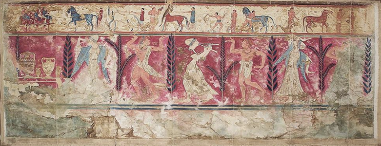 Negli affreschi della tomba delle Bighe (in foto), conservata nel Museum of Fine Arts di Boston, nelle tribune del pubblico che assiste alle competizioni, oltre a donne d’ogni età, si vede anche una giovane che abbraccia l’uomo che le è seduto vicino. Una scena di sbalorditiva modernità che riporta ai nostri giorni. Nella tribuna raffigurata sulla parete destra, in particolare, una matrona con velo (forse una sacerdotessa) è rappresentata in prima fila e due ragazze, più dietro, assistono ai giochi sedute in mezzo agli uomini. La matrona con un gesto solenne sembra dare inizio alla gara delle bighe.