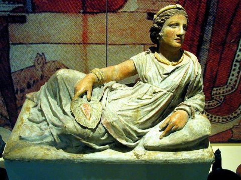 «Le donne etrusche sapevano essere custodi del focolare, ma allo stesso tempo erano in grado di tenere a bada la folla di servi e domestici. Semplicemente, a differenza di Penelope e Andromaca, esse non si accontentavano di attendere pazientemente a casa il ritorno degli sposi, ma prendevano legittimamente parte a tutti i piaceri della vita», scrive lo storico francese Jean-Paul Thuillier.