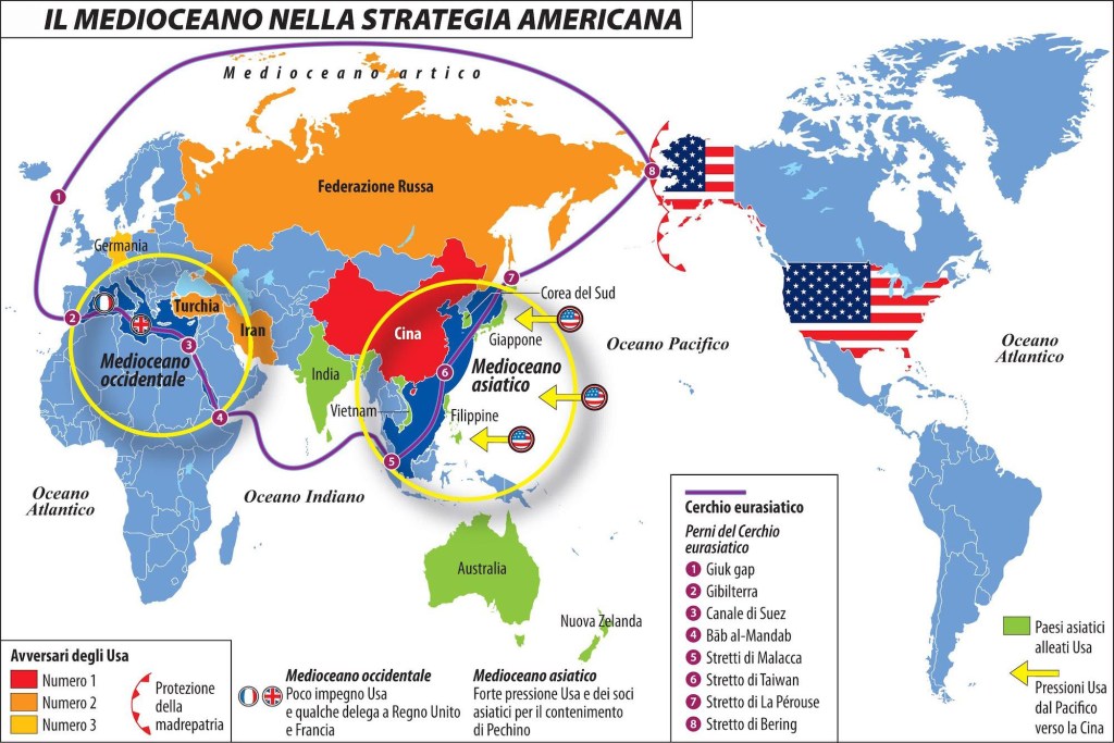 Questo numero è ricchissimo di ulteriori approfondimenti, molti sul ruolo che l’Italia dovrebbe avere d’ora in poi nei confronti degli Usa. Il consiglio che viene da più parti è di non abbandonare il Mediterraneo, chiamato Medioceano, e di presidiare Caoslandia, controllando lo Stretto o Canale di Sicilia, la Libia, stando molto attenti alle conseguenze per l’Italia di ciò che sta accadendo in Tunisia e seguendo eventualmente in modo solo scenografico gli Usa nell’IndoPacifico a contrastare la Cina. Su questo punto Fabbri e Caracciolo hanno opinioni diverse.