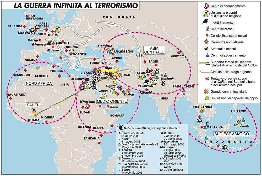 All’indomani dell’attentato alle Torri Gemelle e a un’ala del Pentagono dell’11 settembre 2001, il primo errore della politica statunitense fu quello, inizialmente comprensibile, di reagire emotivamente e irrazionalmente, elevando una tattica o una tecnica, anche se la più pericolosa, il terrorismo, a soggetto nemico e rispondendo all’attacco di matrice saudita pakistana con l’invasione dell’Afghanistan in cui alcuni gruppi di Talebani avevano dato ospitalità a Bin Laden.