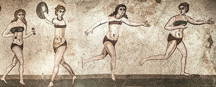 Esempi di subligar e strophium si trovano nel famoso mosaico della Villa Romana del Casale, in Sicilia (presso Piazza Armerina) dove ragazze fanno esercizi o giocano a palla indossando tali indumenti, e portano una o più tuniche di lana o lino senza maniche: le subuculae.